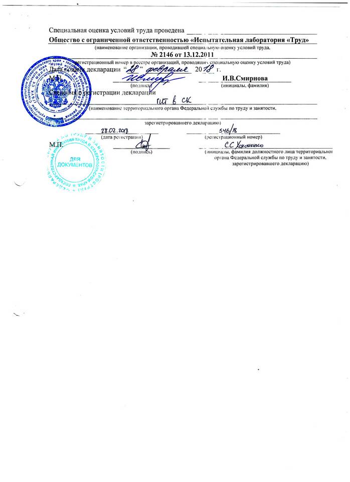 Декларация соответствия условий труда - это документ, подтверждающий, что условия труда на рабочих местах работодателя соответствуют государственным нормативным требованиям охраны труда. Она подается работодателем в территориальный орган Роструда.